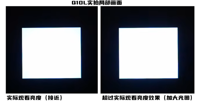 而参考这张白方块边缘的细节,上面是两种光圈下Q10L局部画面,即使加大光圈,都只能勉强看到一点点的光晕,现场观看下,光晕已经被控制得几乎不可见了;