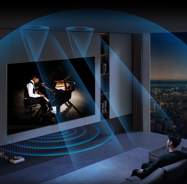 音响上,Q10L搭配的是安桥2.2.2声学设计,拥有2个主声道+2个低音单元+2个天空声道,使得电视的声音更立体、开阔,远超普通电视的多喇叭效果。