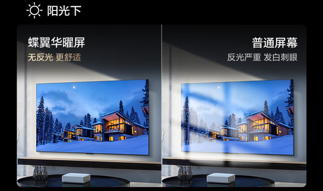 这很好解决了夜间看电视时家里灯光反射问题,也能在白天不用担心室外光线对电视屏幕的影响。