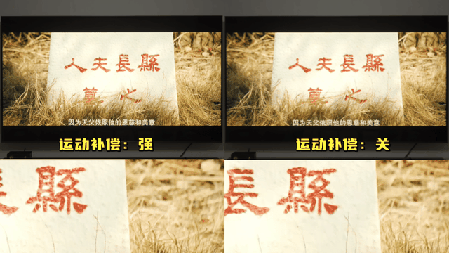 运动补偿也是画质芯片的工作范围,这对目前普遍24/30帧的电视与在线视频是非常有用的,上面录制的一小段就是24帧电影使用运动补偿功能的差别。