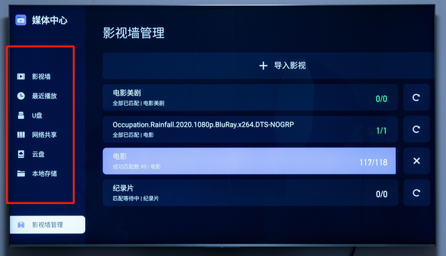 影视墙目前支持U盘、NAS、网络共享等,用户可自行定义多个影视墙的路径,选好后交给系统进行了,或许未来高清播放器会逐渐被取代了。